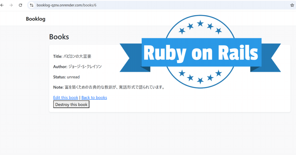 Rails Booklog — 読書ログ(Ruby on Rails + PostgreSQL)