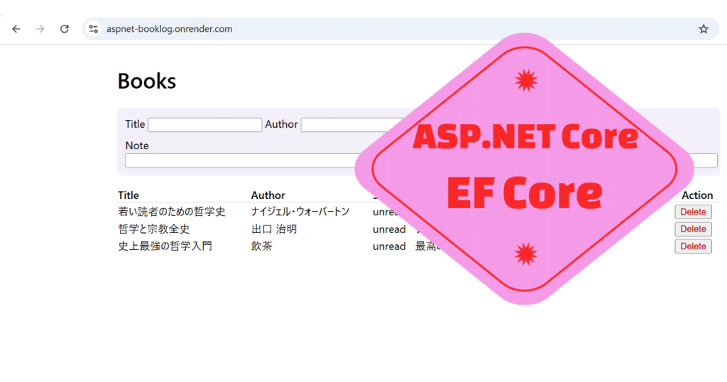 ASP.NET Booklog — 読書ログ(ASP.NET Core + EF Core + PostgreSQL + Docker + Render)